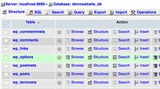As you can see that all tables in the database have wp_ prefix before table name. Your tables may have a different prefix.