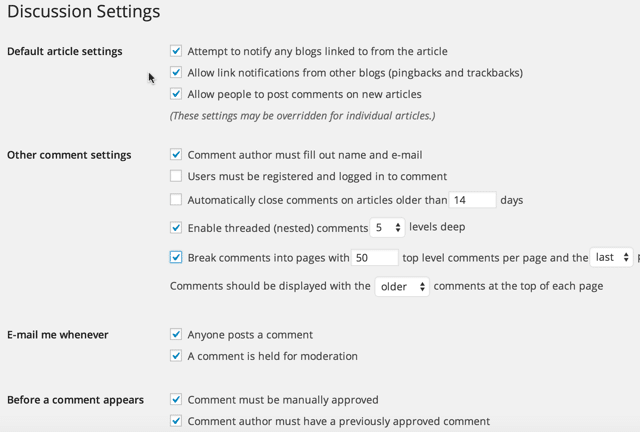 Set WordPress Discussion/Comments Settings