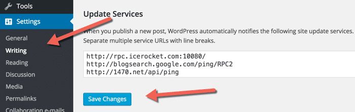 - Populate the WordPress ping list.