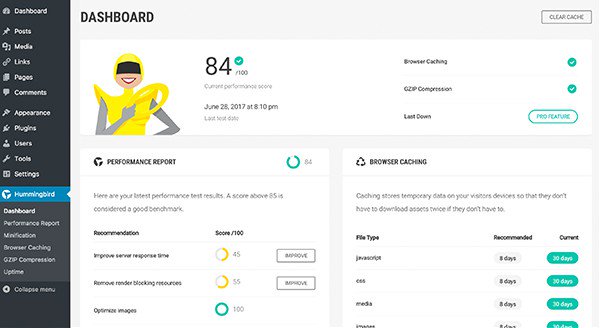 Hummingbird is the ultimate performance optimization plugin for WordPress. Once activated, it scans your site for potential speed improvements and provides fine-tuned controls for file compression, minification, and browser caching. Not only does Hummingbird make your site faster, but it also helps you improve your Google PageSpeed Insights score!