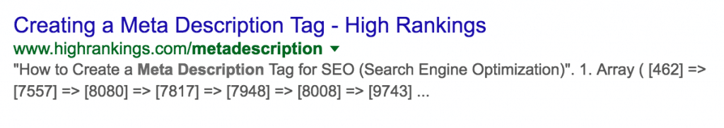 I’m not sure if there’s something blocking Google’s ability to crawl the webpage properly, but a website called ‘High Rankings’ should really know better than this…