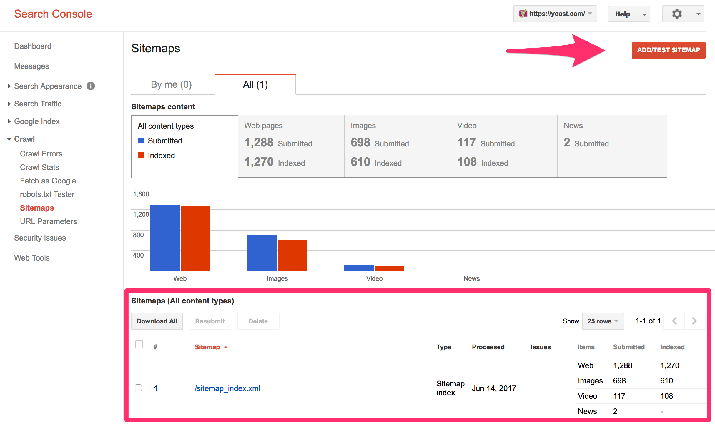 The XML sitemap of Yoast is added to Google Search Console